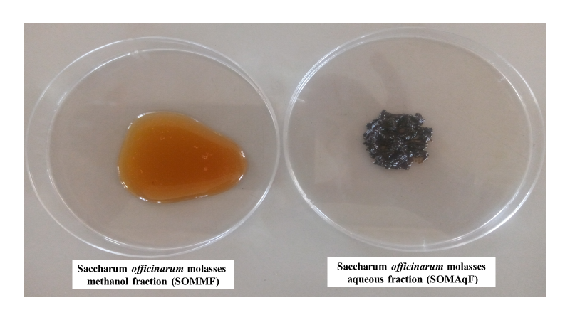 The Saccharum officinarum molasses (SOM) (Blackstrap®, Old English Incorporated, USA) extraction was by the method of Gandhi, et al.16 resulting in two portions; SOM methanol fraction (SOMMF) and SOM aqueous fractions (SOMAqF) administered to the rats.